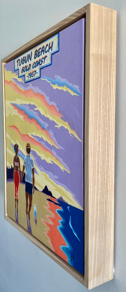 SOLD - Tugun Beach, Gold Coast. 1957. Sunset stroll.